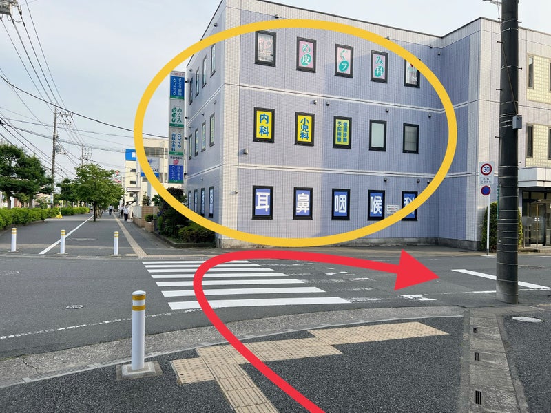 8.3階建のクリニックの前の横断歩道を右に進みます。