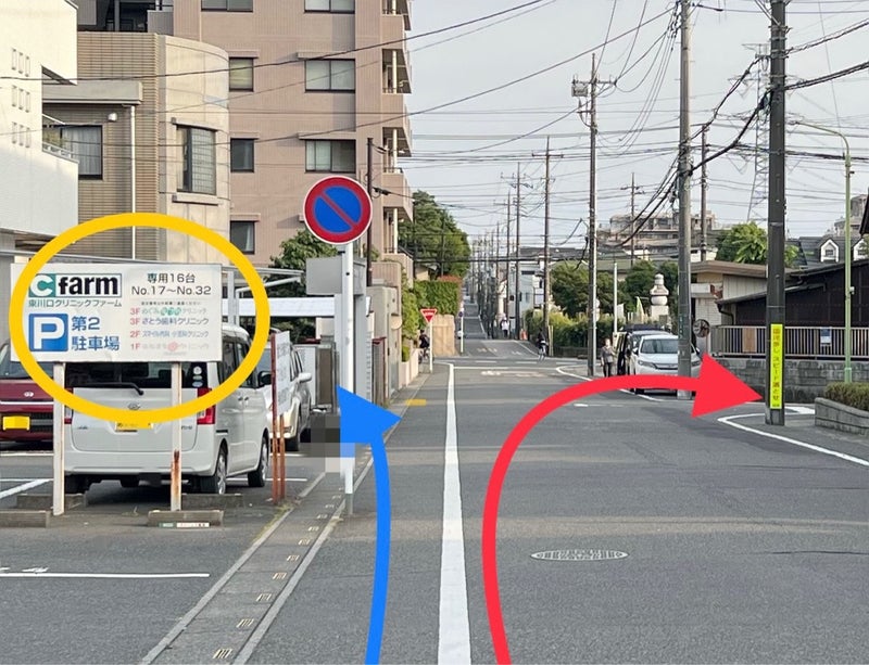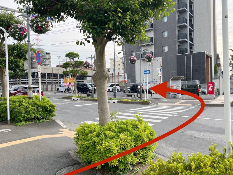 電車でご来店の方はそのまま駐車場を通過したらすぐに右に曲がります。